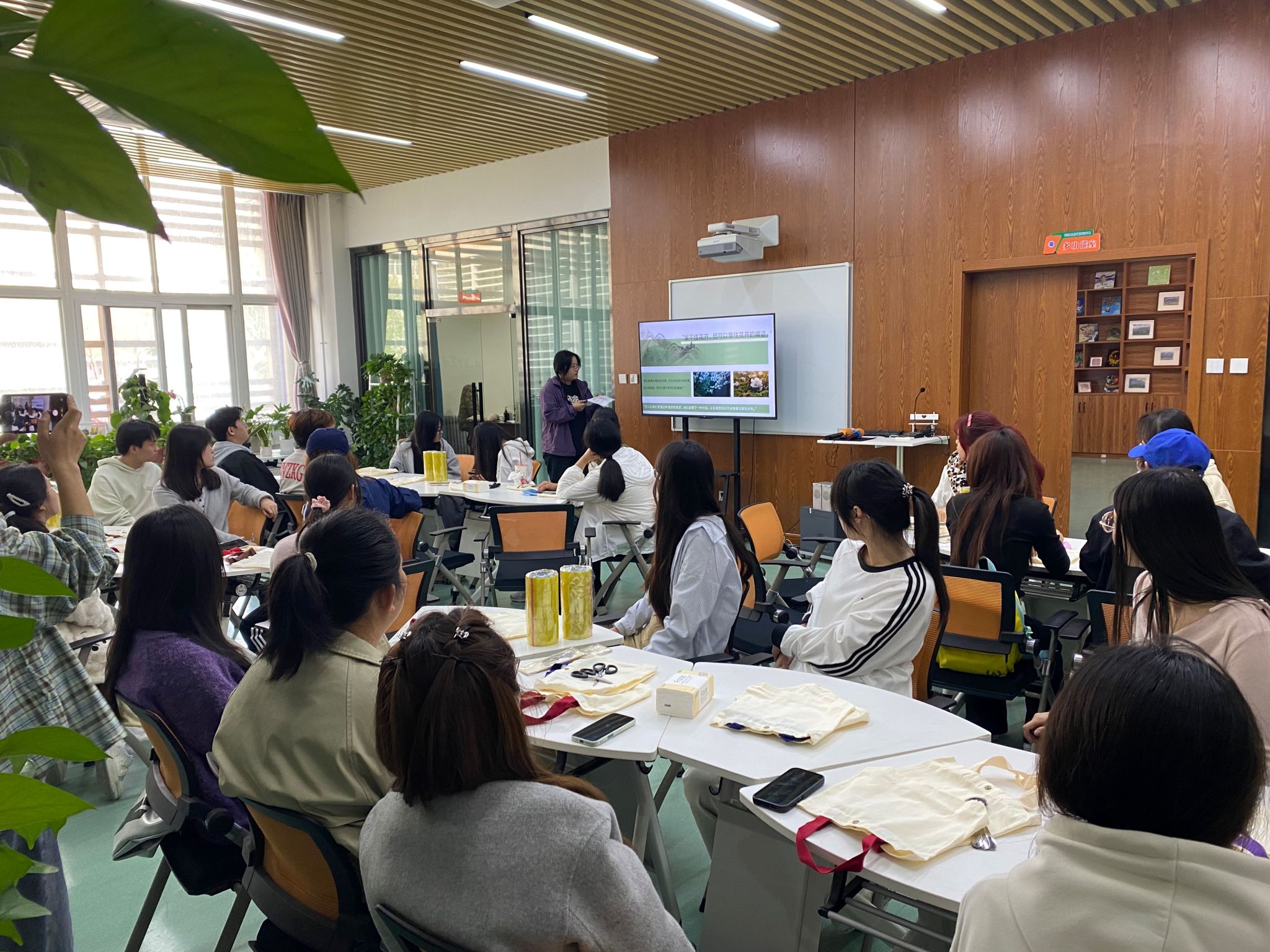 活动紧扣清明文化内核展开,工作人员首先为同学们细致讲解了清明节扫墓祭祖、踏青寻春传统习俗,深入阐释节日蕴含的缅怀先辈、感恩思源、珍爱自然的文化内涵。随后,工作人员结合植物拓染这一传统非遗手工技艺,详细介绍了拓染的历史渊源、植物选材技巧、布料处理方法以及拓染实操要点,通过图文结合的方式分步演示,清晰拆解拓染流程,为同学们后续动手实践打下坚实基础。