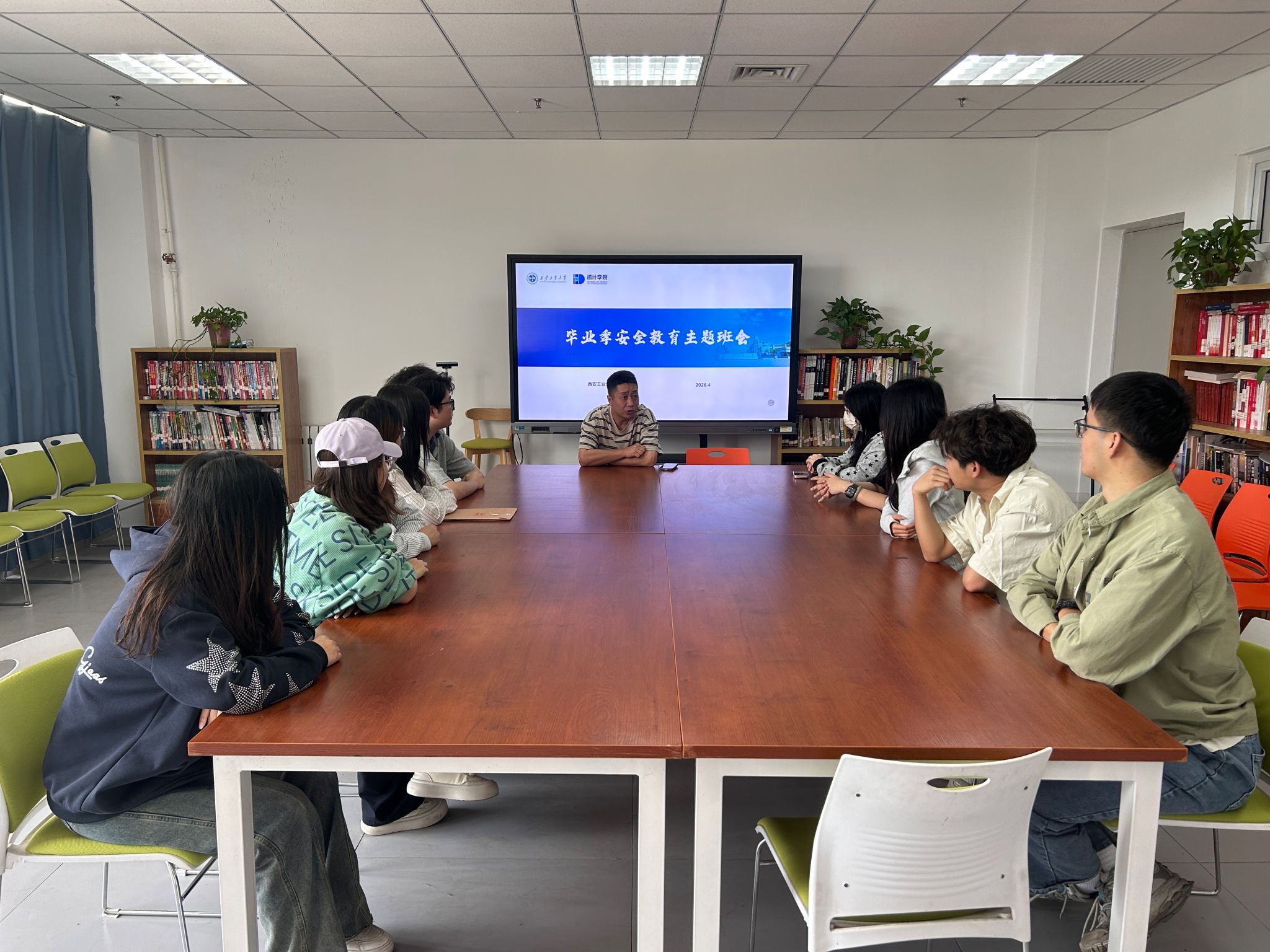 2026年4月17日,中文字幕av 召开“荣校有我”2026届毕业生安全教育主题班会。班会围绕爱校荣校、文明离校、应聘安全、职业发展展开,辅导员洪涛细致讲解毕业流程、离校安全与注意事项,着重叮嘱学生在就业过程中谨防上当。
