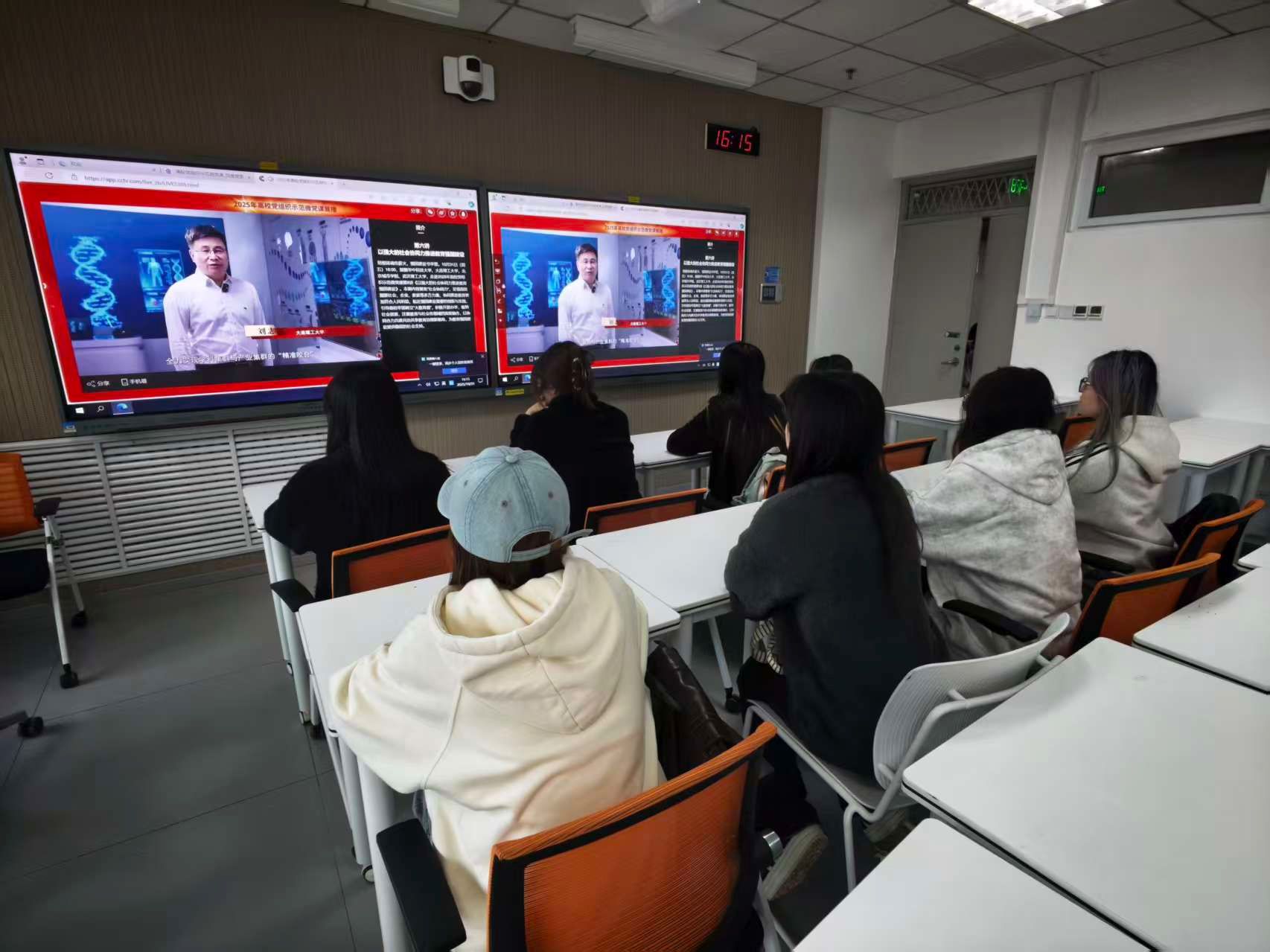 组织师生党员观看“2025年高校党组织示范微党课第六讲”。