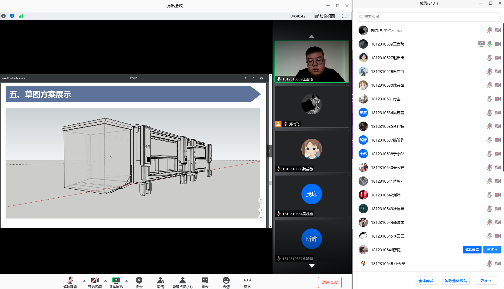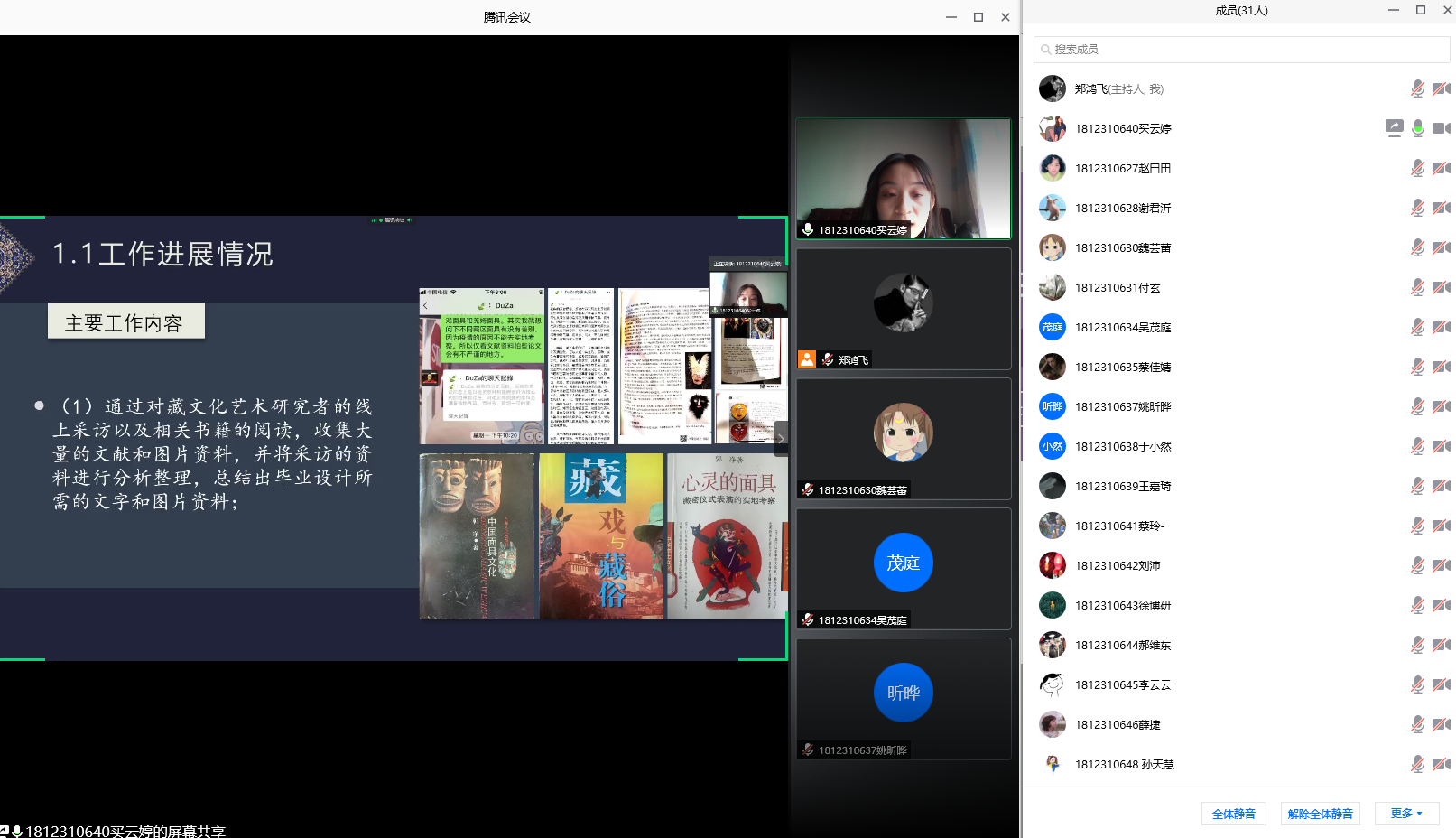 本次学位论文中期检查答辩,全部采用线上形式进行,研究生对学位论文实际进展情况及下一步研究内容等进行了整体汇报,答辩委员对论文研究的内容与质量、研究成果与创新之处等进行了质询,并结合艺术硕士创新设计能力培养和设计实践内容,对现阶段论文进展情况作出了综合评价,指出了存在的问题,明确了下一阶段的设计研究内容,督促学生们完成高质量的学位论文。