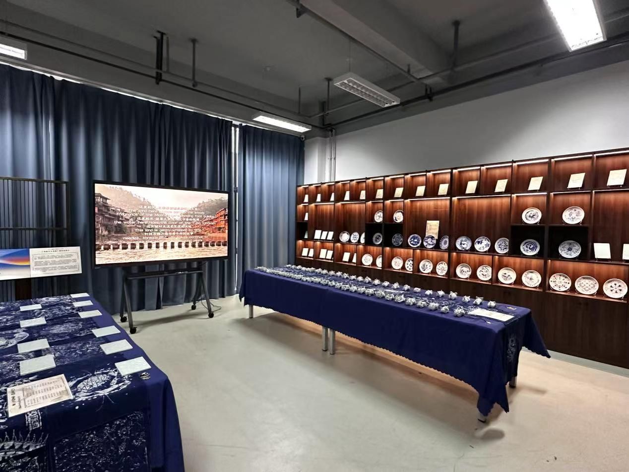 此前,该专业学生在教师带领下,分赴景德镇、湘西两地开展考察学习。本次课程展将集中呈现学生在考察过程中的实践成果。在景德镇考察期间,学生围绕“瓷语千年・秦汉唐韵——文化遗产的现代陶艺新生”主题深入创作。创作过程中,同学们将秦汉唐纹样的典雅、汉代四方神兽的威严、秦代虎符的厚重等传统元素,与现代艺术语言有机结合,让千年陶瓷文化在新的创作载体中焕发生机。湘西考察团队则聚焦非遗扎染技艺,以数字媒体艺术的专业视角,系统探索扎染的肌理特点、色彩层次与文化内涵。通过创新实践,同学们打破了大众对古老扎染工艺的固有认知,展现出这一传统技艺在当代语境下的多元表达可能。